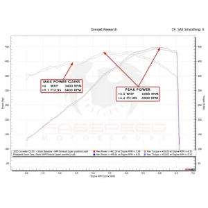 We dyno tested these Sport Cats on a Z51 package C8 that had the NPP valved exhaust. At the wheels we saw curve gains as much as 20 hp and 22ft/lbs of TQ over the stock catalytic converters. Both dyno runs were done with the valves open on the NPP exhaust.