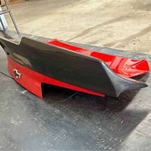 Up for sale is a complete red OEM trunk lid assembly for the 2016-2024 Chevrolet Camaro (6th gen), featuring a Streetfighter LA real carbon fiber spoiler already professionally installed. This is a ready-to-install package that saves you the hassle of drilling, aligning, and mounting a spoiler yourself.